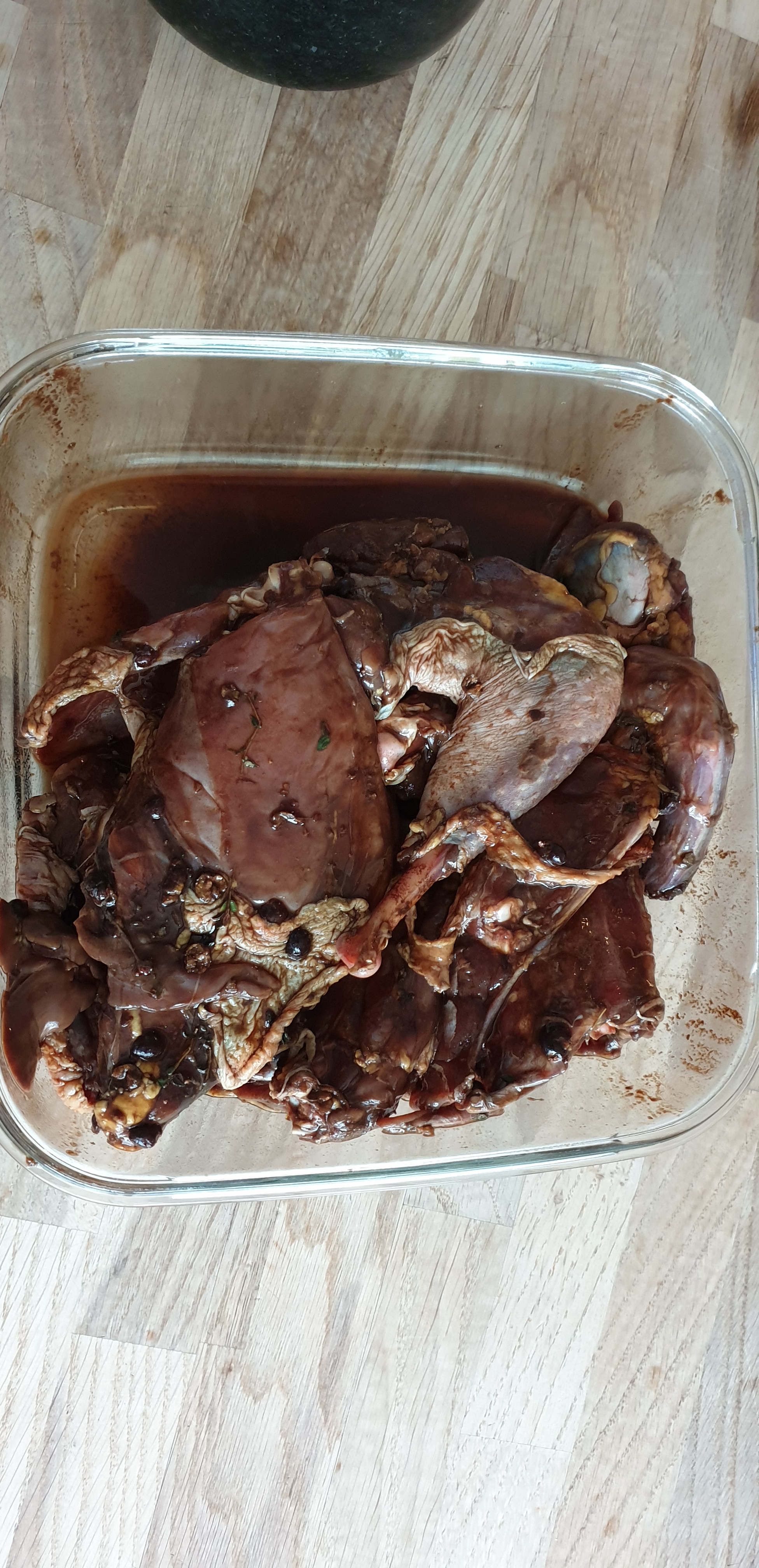 - Fazanin e prerë e të pastruar, së bashku me të brendshmet, i përzieni mirë në marinadë deri sa secila të jetë mirë e mbështjellur në lëngun e marinadës. E mbyllni me kapak apo folie plastike dhe e leni të qëndrojë afro dy orë në vend të freskët apo në frigorifer