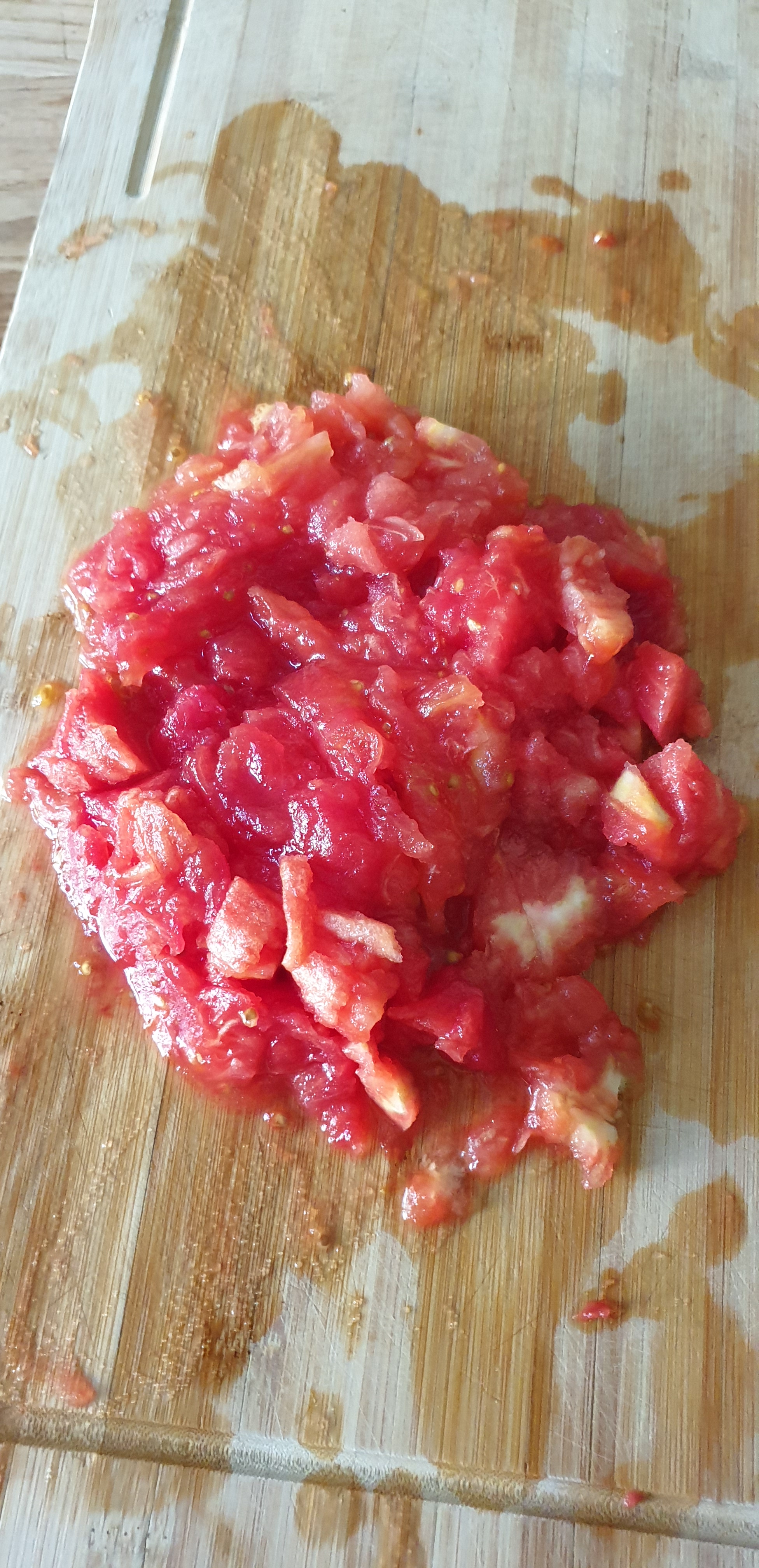 - 3 domate mesatarisht të mëdha të qëruara dhe të grira