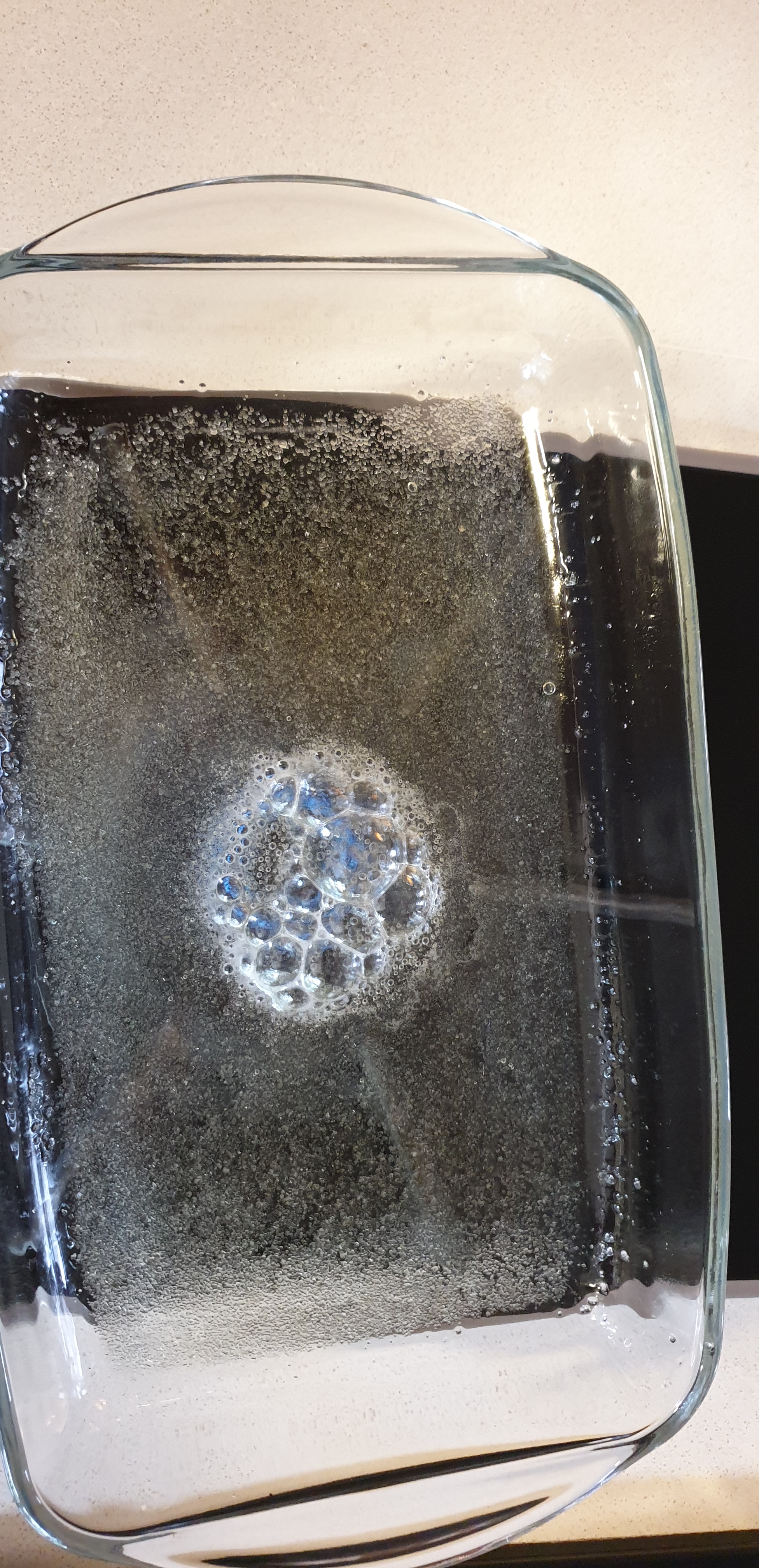 - 3-4 lugë sheqer (ose deri sa e mbulon fundin e tepsisë)
