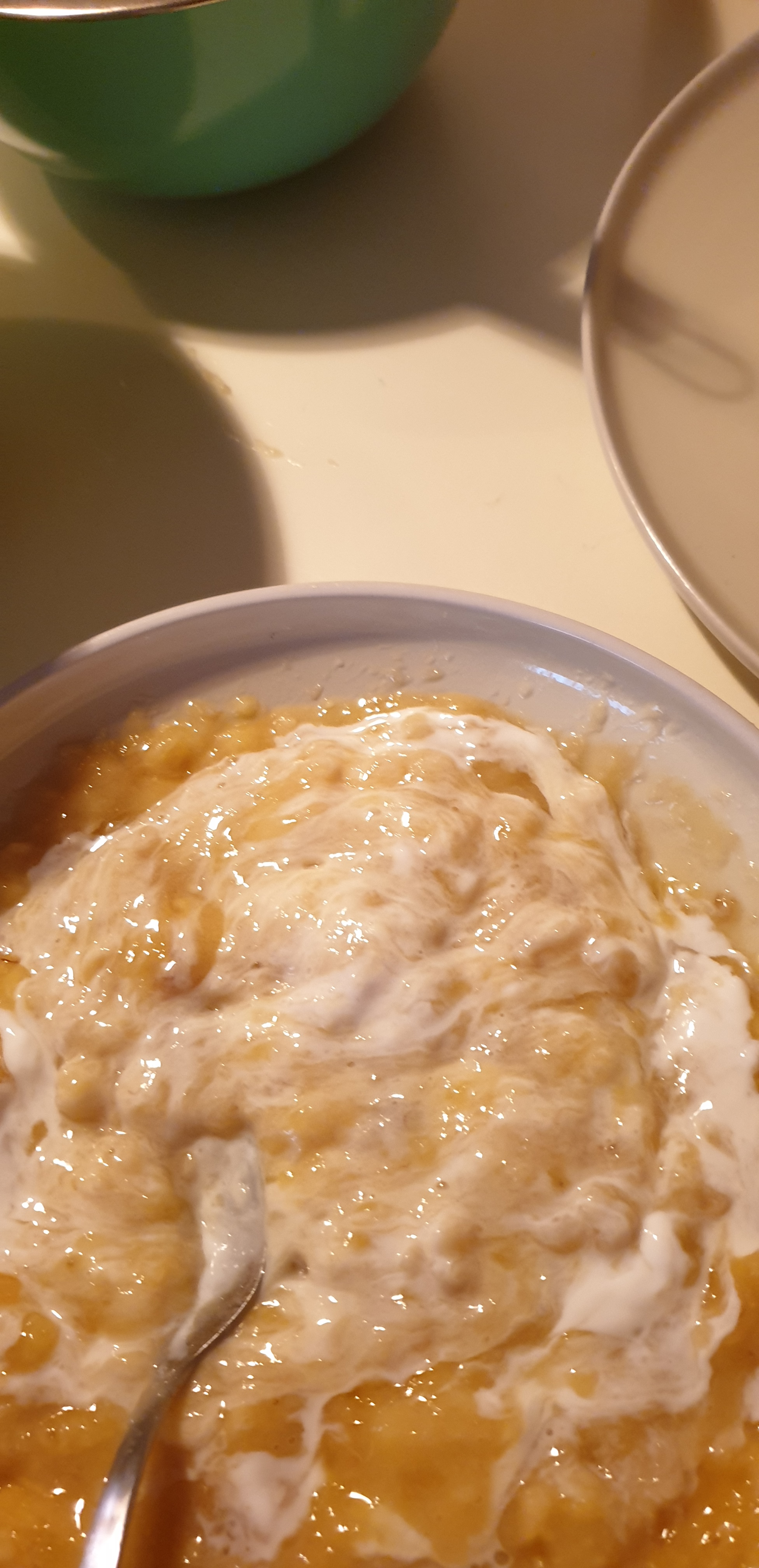 - Në një enë tjetër i shtypni bananet dhe ia shtoni kosin, i përzieni