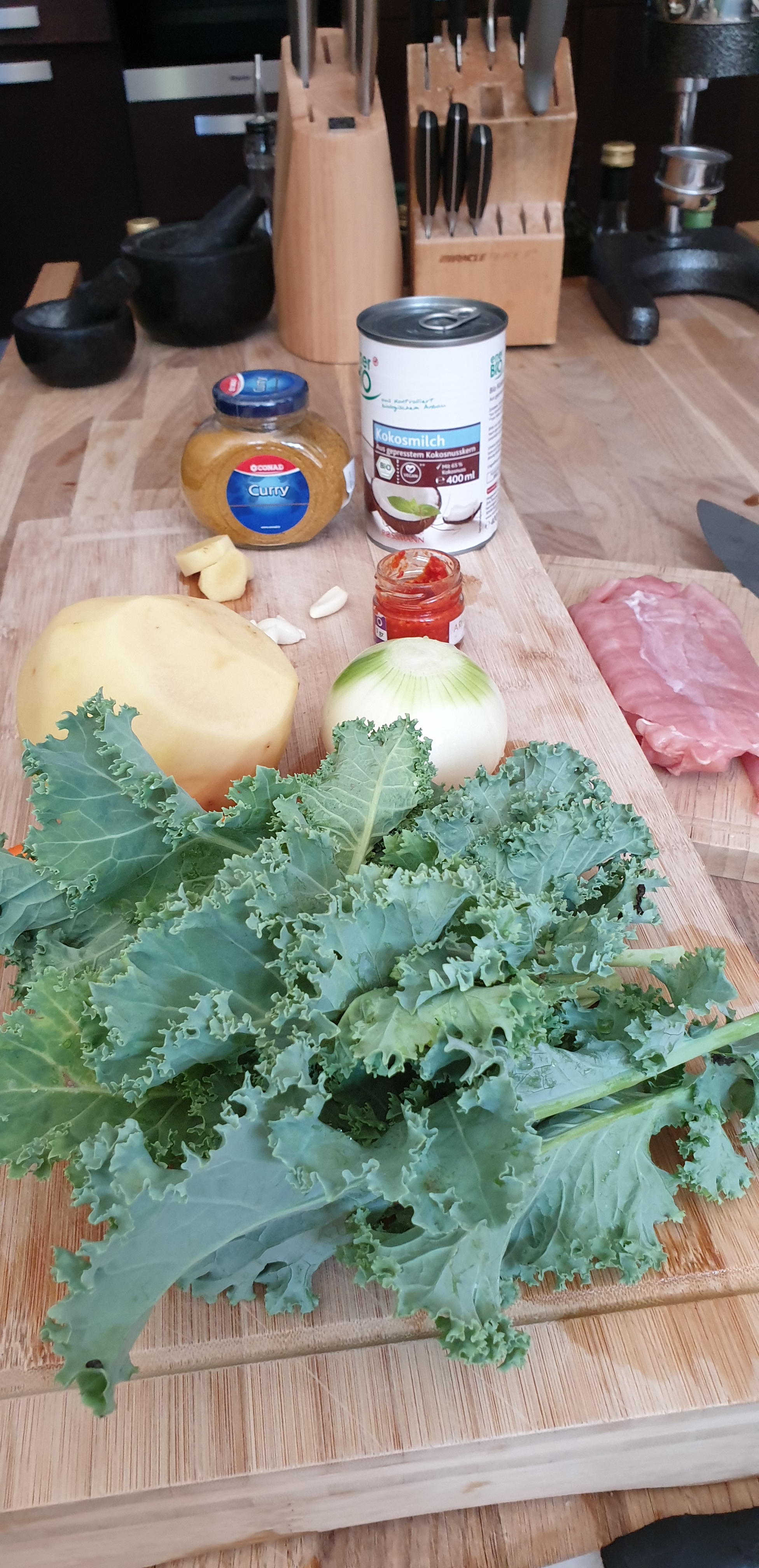 - I përzieni të gjitha së bashku dhe ia shtoni tamlin/qumshtin e kokosit të cilin e tundni mirë para se ta hapni. E shpërlani kanaqen me pak ujë (1/3 e kanaqes) dhe ia shtoni kërit, e përzieni dhe e leni të merr valë. Tani i shtoni gjethet e spanaqit (apo çkado që përdorni) duke i fundosur që të zbuten