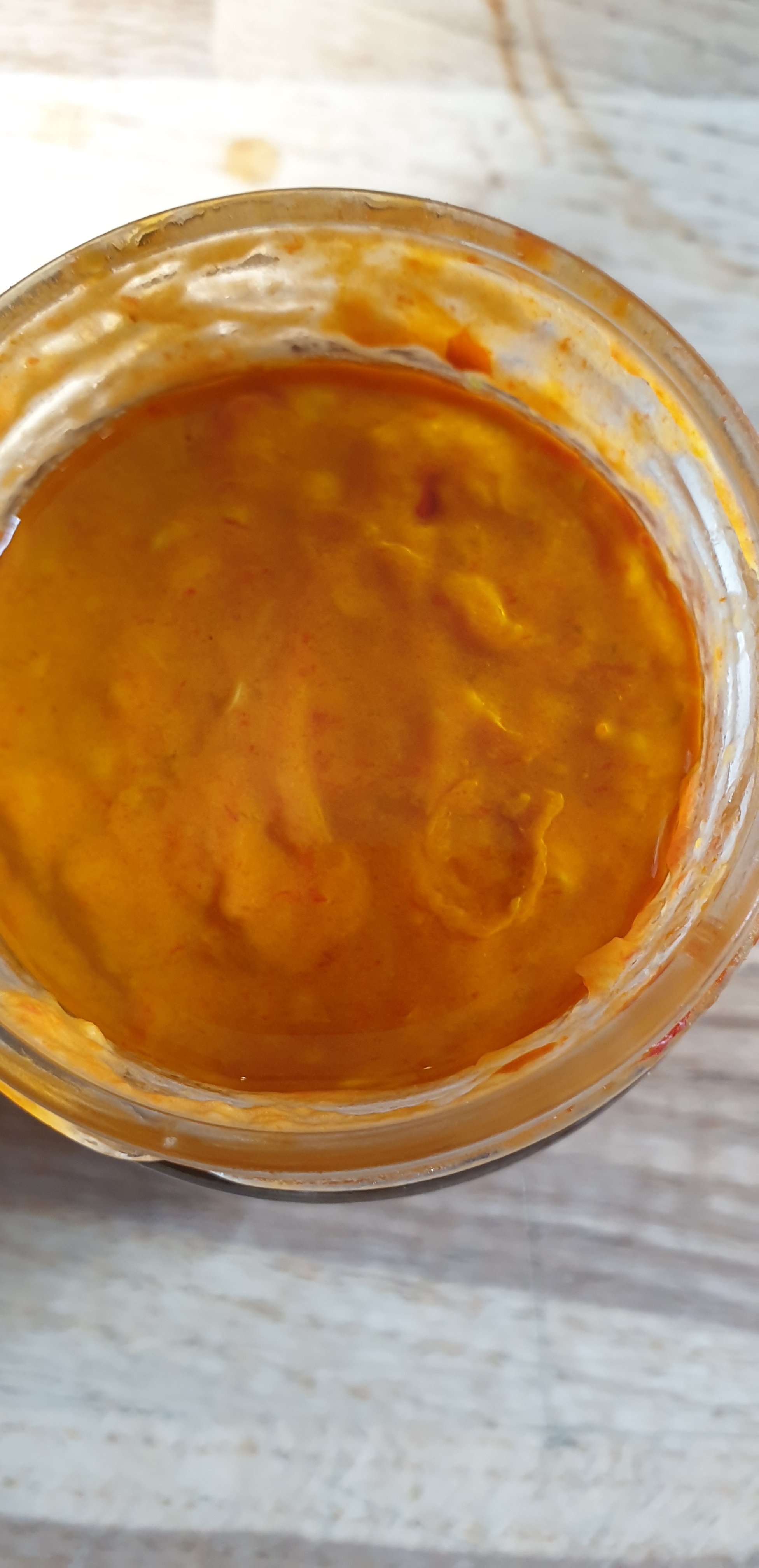 Për këtë salcë unë i kam përzier me speca tjera, që poashtu janë të djegsa por janë shumë më ultë në hieraraki se sa habanero, dhe poashtu kam shtuar një hudër të pjekur që ti jepë aromë dhe ëmbëlsi. Për ti dhënë masë, pasi që specat e djegës pothuaj nuk kanë fare pulp, i kam shtuar edhe pak salcë të domates.