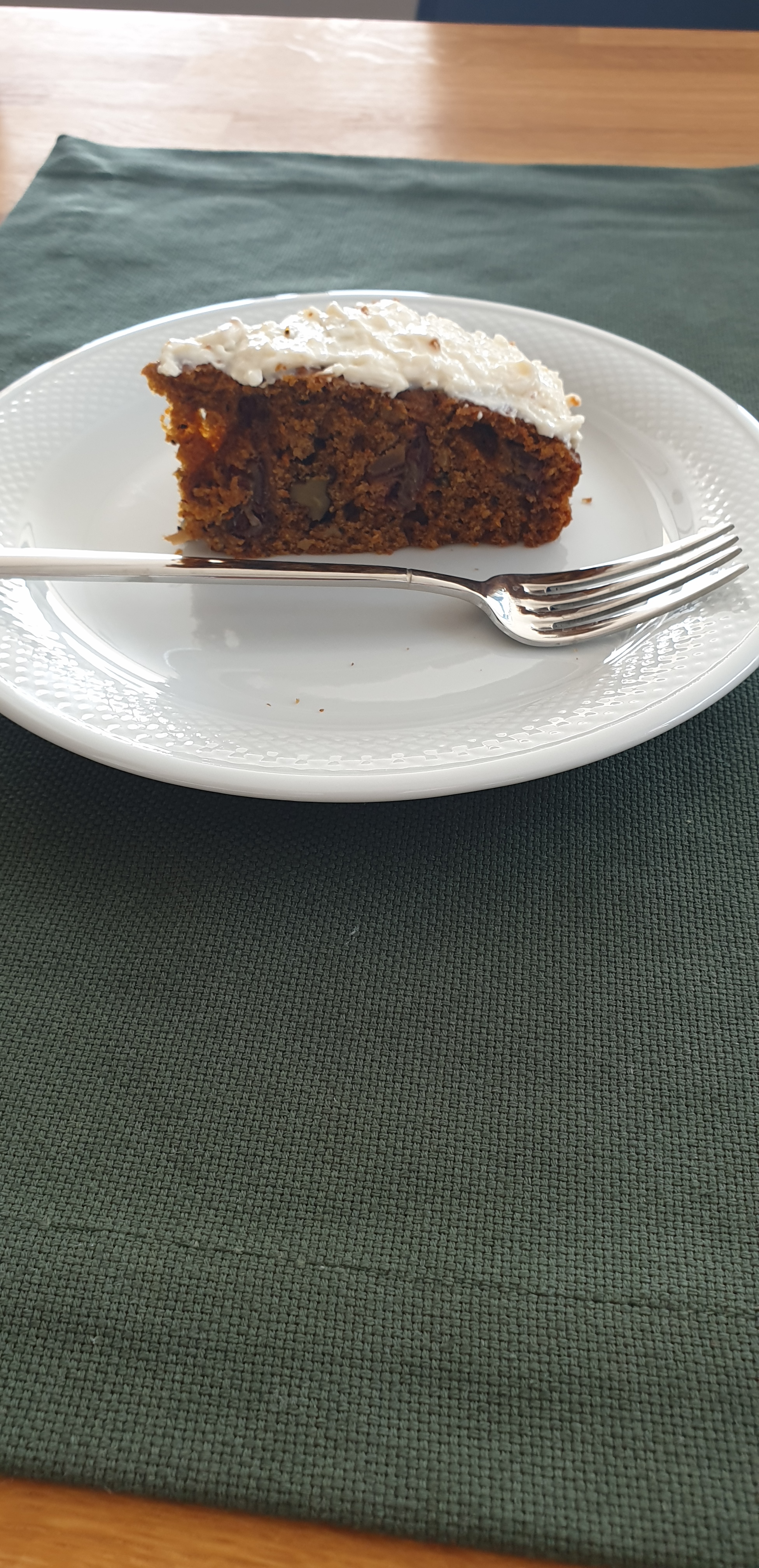 Keku mund të piqet në tepsi ose në enë të vogla për mafin. Pasi që të piqet mund ta lyeni me krem djathi me pak sheqer. Unë zakonisht përdori pak sheqer prandaj për të tjerët shpesh e servoj me sirup panje (maple sirup) për ëmbëlsi të shtuar.