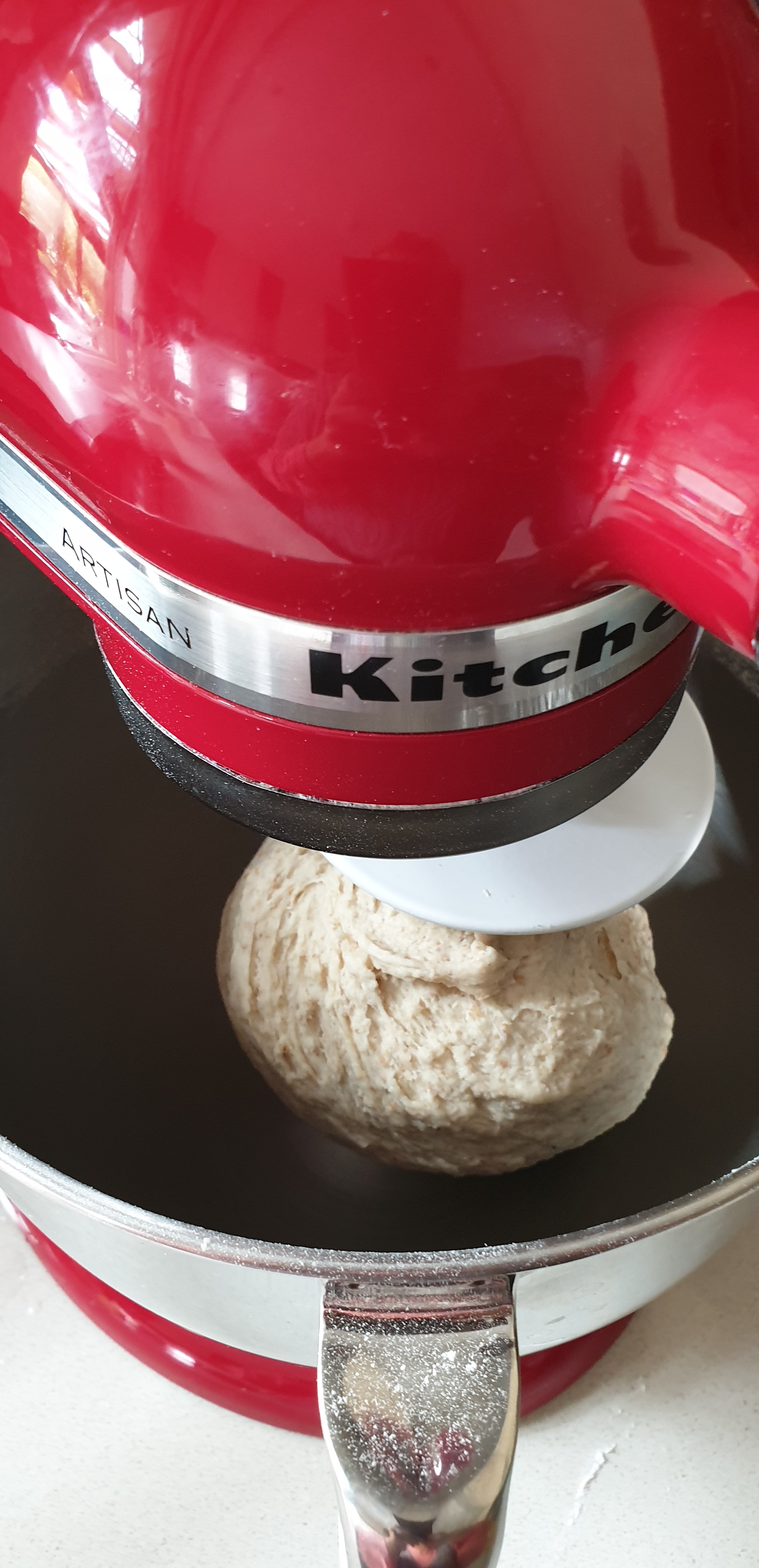 - I shtoni ujë aq sa brumi bëhet bashkë dhe elastik dhe jo shumë i fortë. Tani e ngjeshni afro 5 minuta me dorë apo rreth 4 minuta nëse përdorni mikser