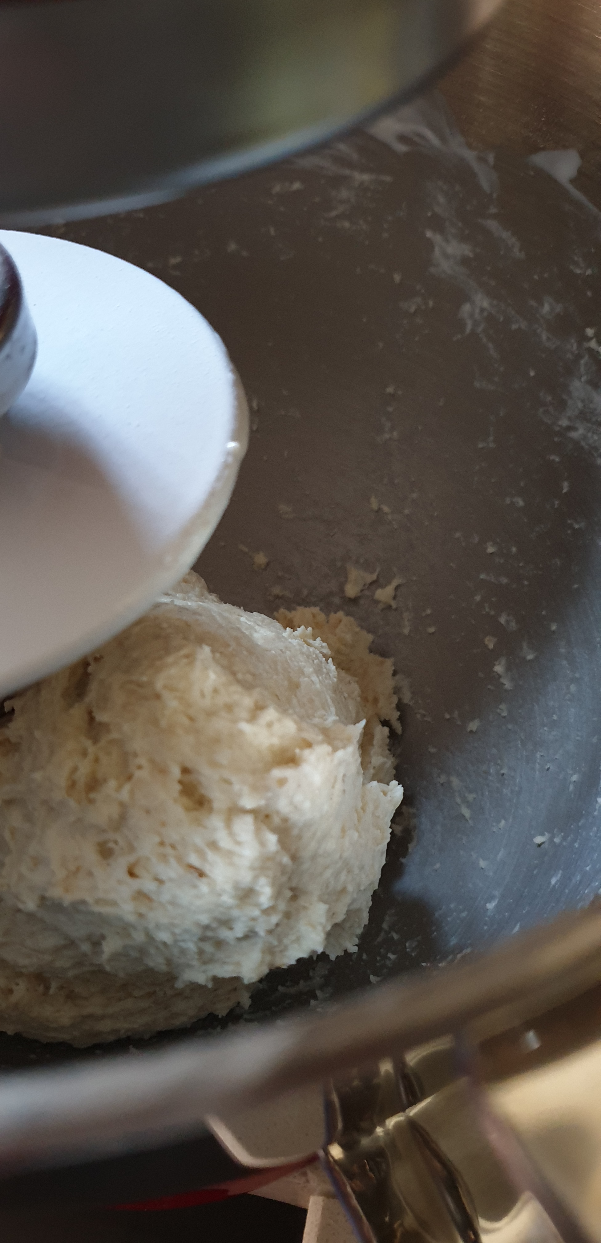 - Nëse ju duket brumi i thatë apo shumë i lagësht i shtoni pak tamël ose miell, sipas nevojës, por brumi duhet të jetë i butë, jo i fortë. Pra, nëse ka nevojë për më shumë miell e shtoni me kujdes në sasi shumë të vogla deri sa brumi është kompakt por i butë dhe nga pak ngjitet në dorë