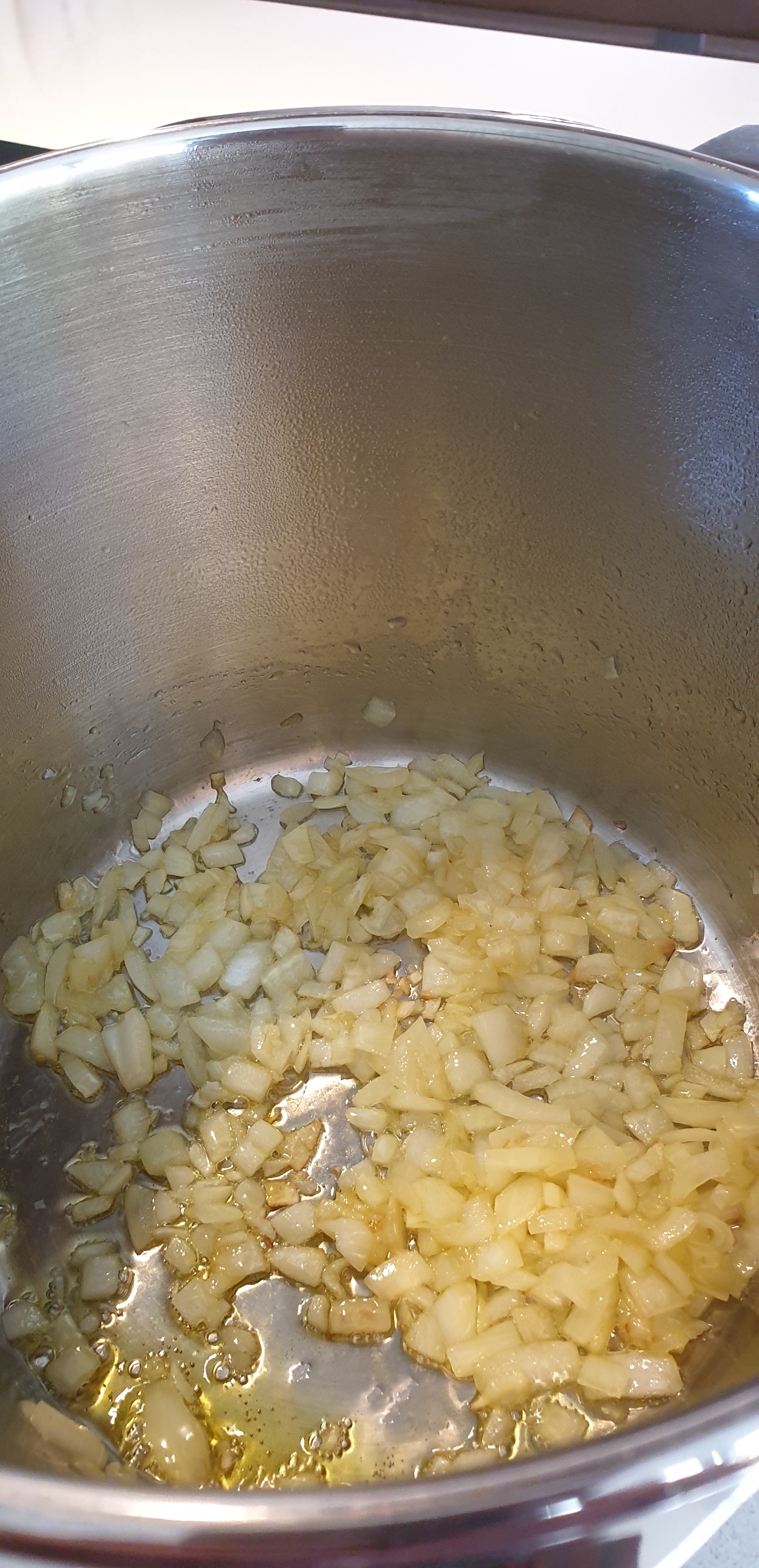 - E grimconi qepën, i lani degët e rozmarinit, i lani hudrat e paqëruara që të ju largoni ndonjë papastërti. E qitni vajin dhe qepën në tenxheren me presion dhe e përzhitni në zjarrë të lartë për 5 minuta