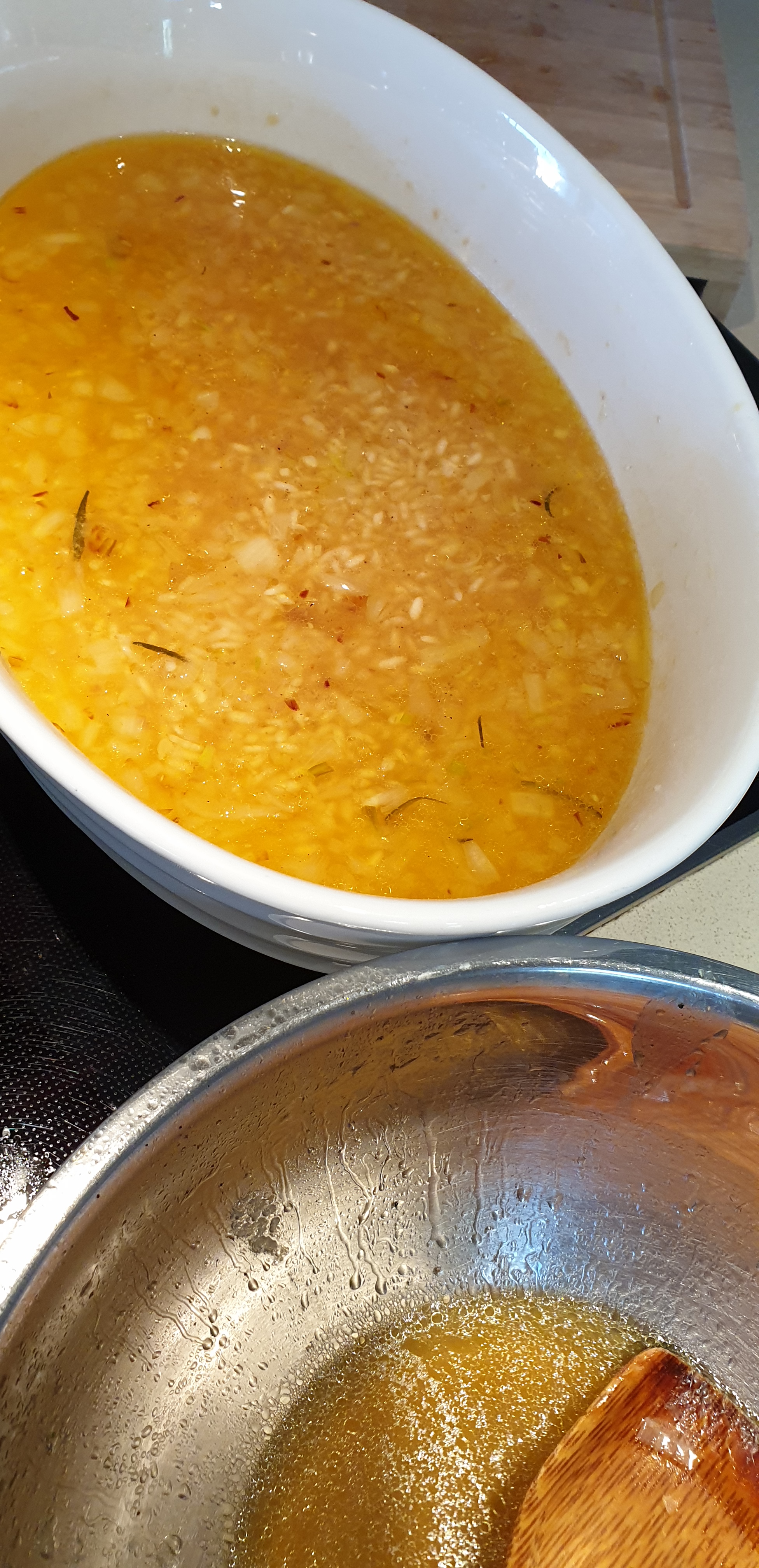 - E pastroni orizini mirë me ujë dhe e ulni në ujë për 15 minuta. E derdhni ujin dhe e leni të kullohet