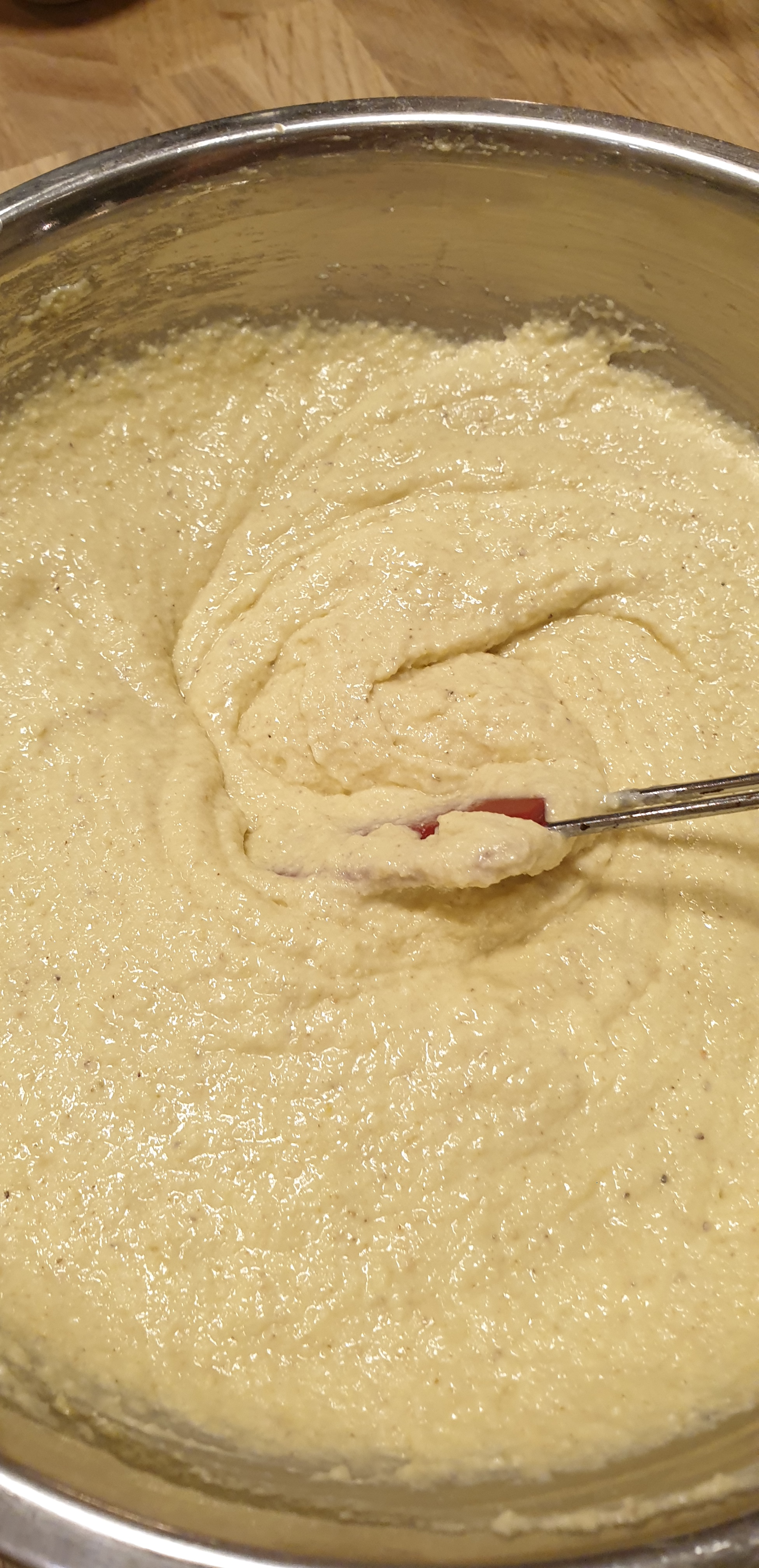 - Në një enë të thellë i tundni vezët me kripë, ia shtoni vajin e tundni pak dhe i shtoni kosin me ujin. I përzineni mirë dhe i shtoni miellin