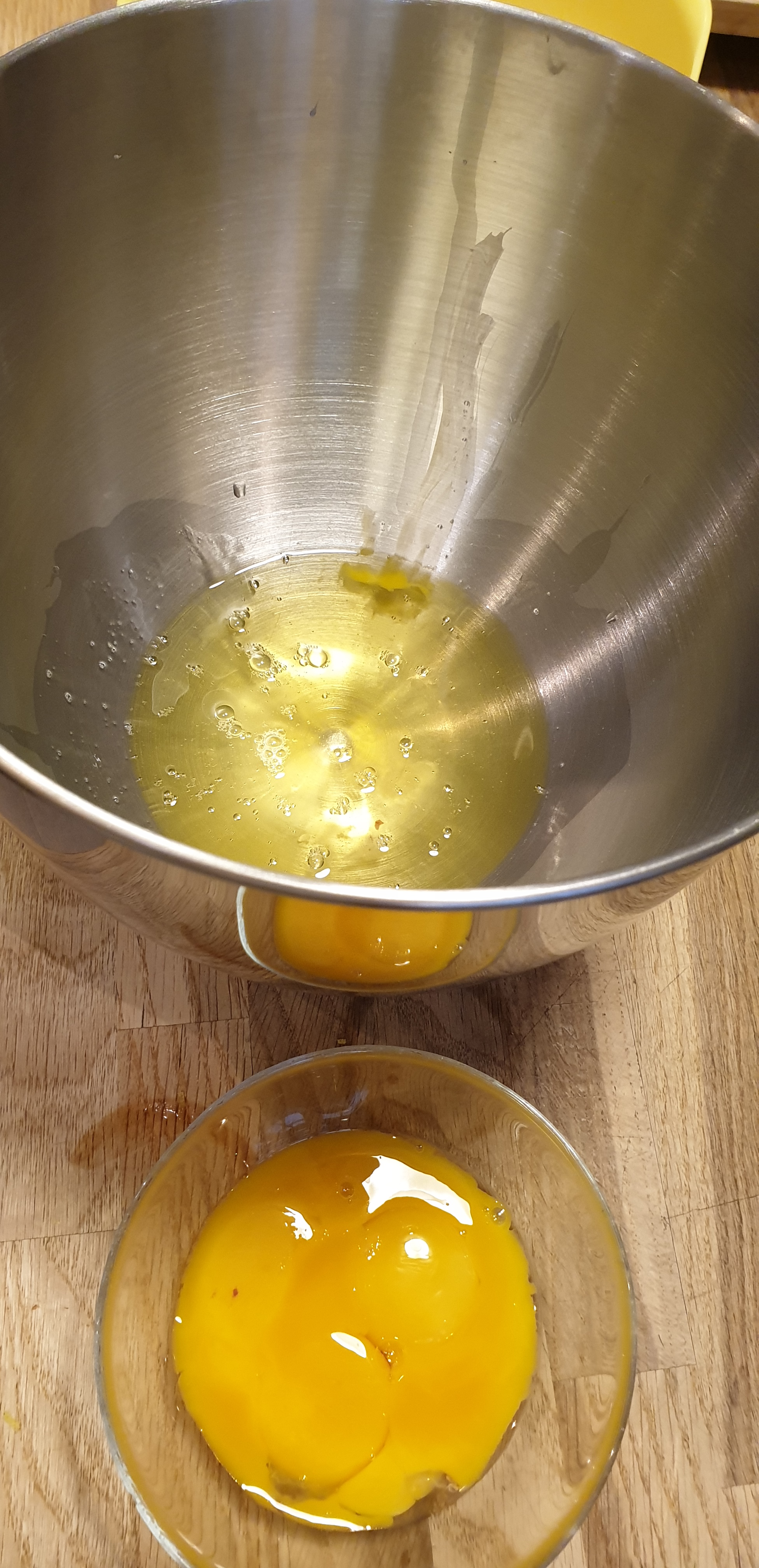 - I ndani vezët dhe të bardhës i shtoni pak kripë në maje të gishtave dhe e tundni në shkumë të fortë, e leni anash