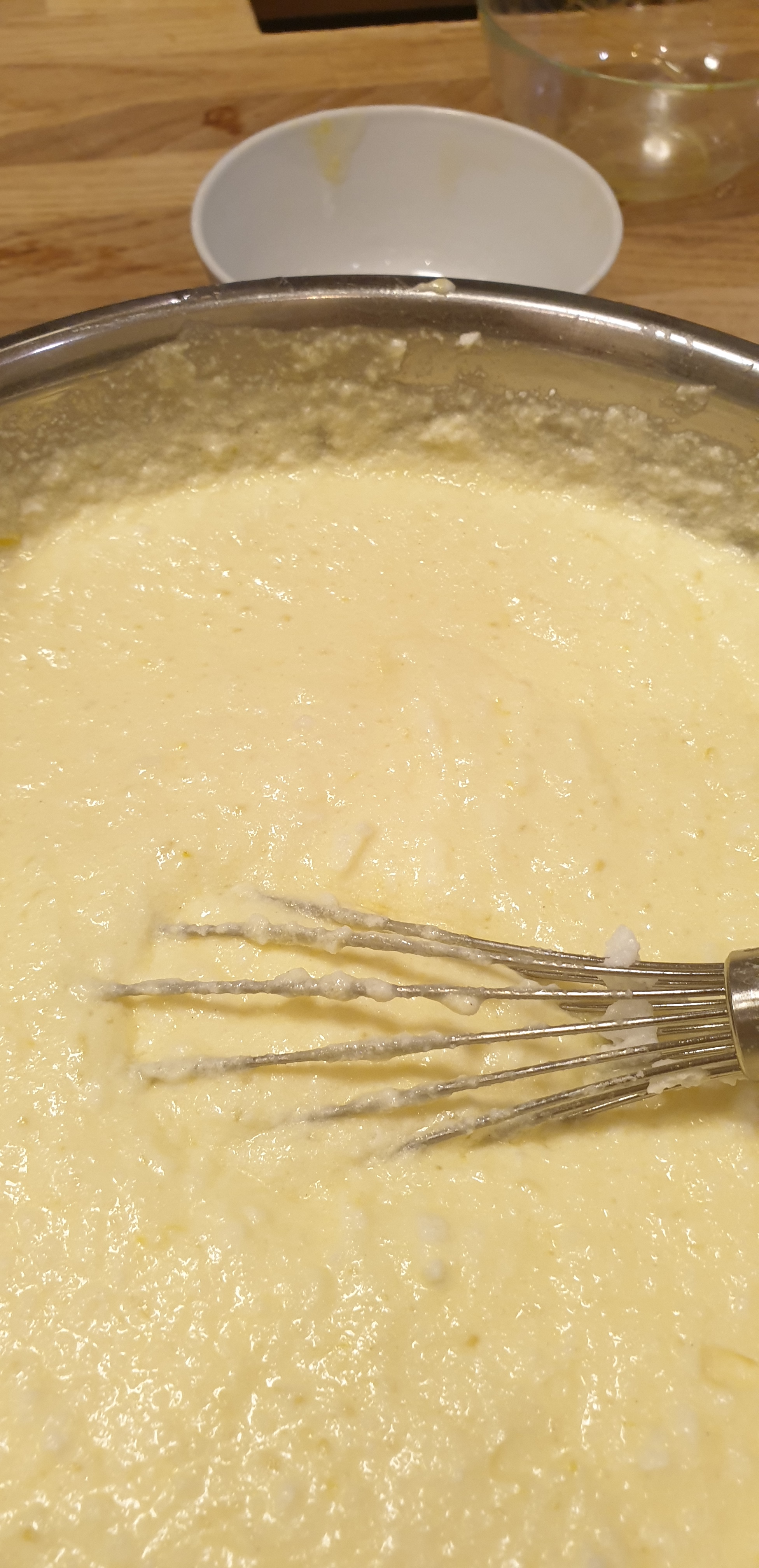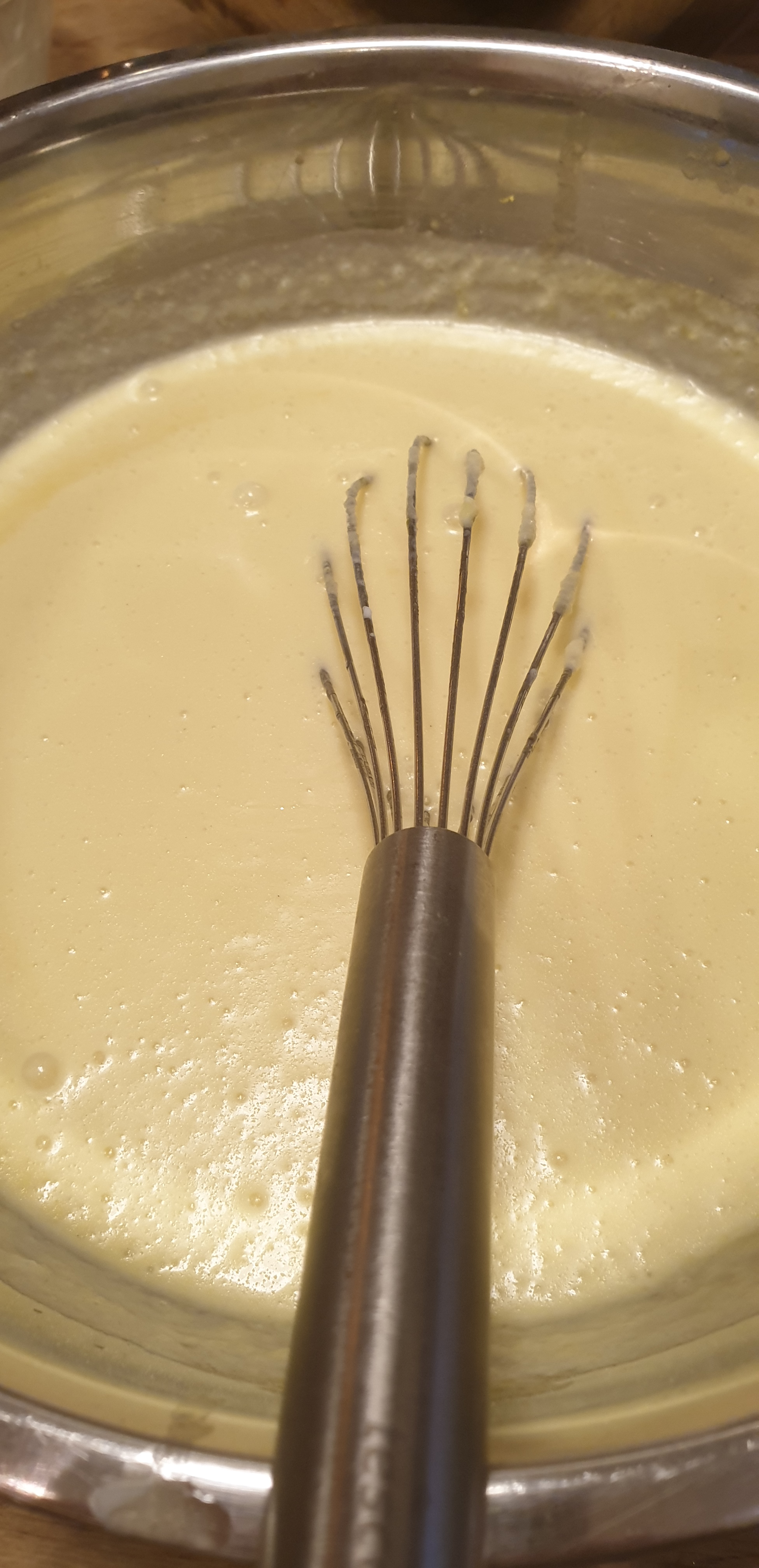 - E përzieni dhe e shtoni tamlin/qumështin. Nëse ndahet puteri/gjalpi nuk ka problem