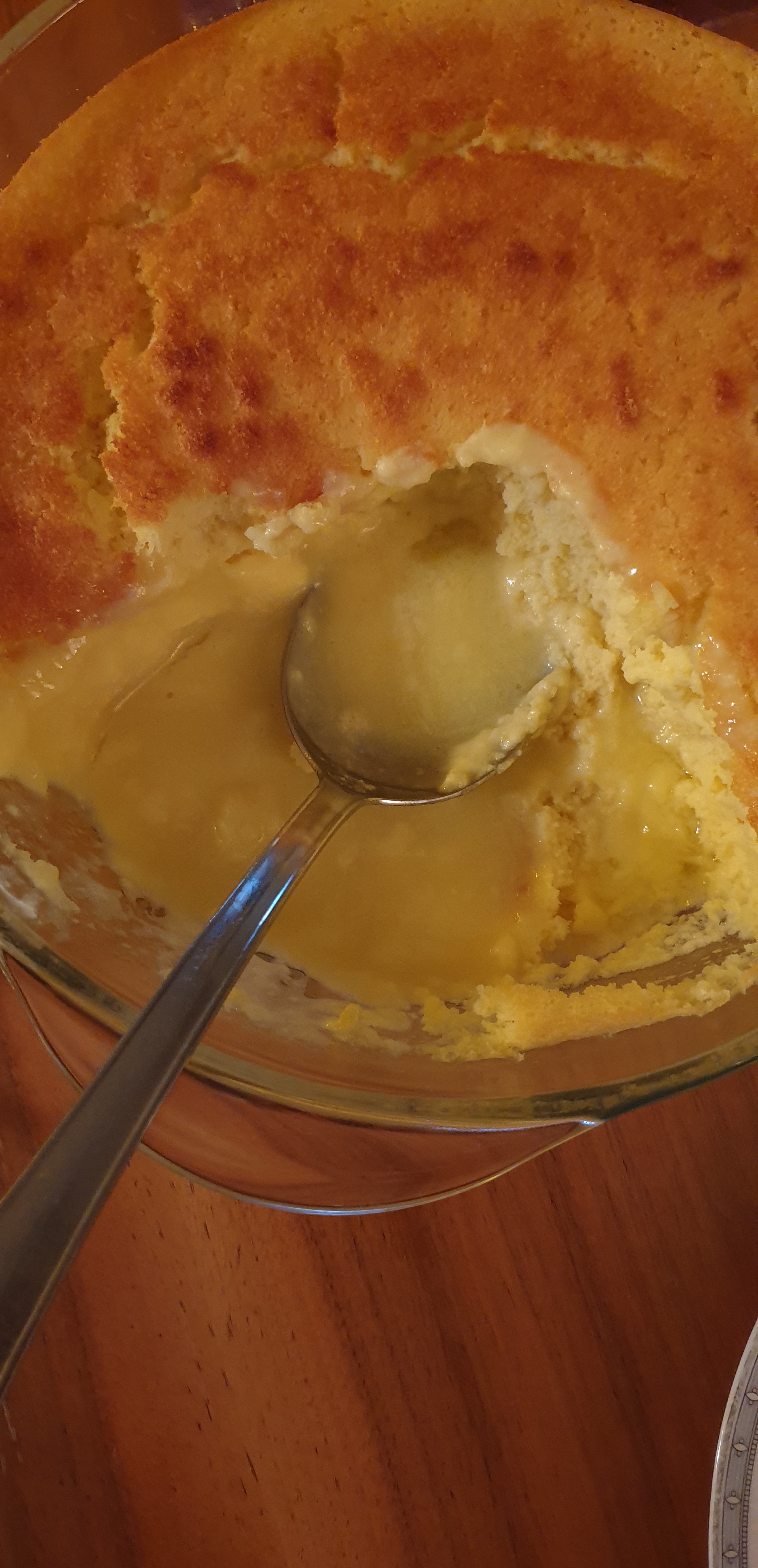 Kjo është recetë angleze, shumë befasuese. Kur piqet, në fund krijohet kremi derisa lartë është brumi i shkriftë. Kjo ndodhë pasi që piqet e zhytur në ujë sikur që bëhet krem karamela. Unë e kam bërë me mjaltë por natyrisht që bëhet me sheqer. Nuk ka nevojë të mbahet në frigorifer e as të prisni që të ftohet që ta servoni.