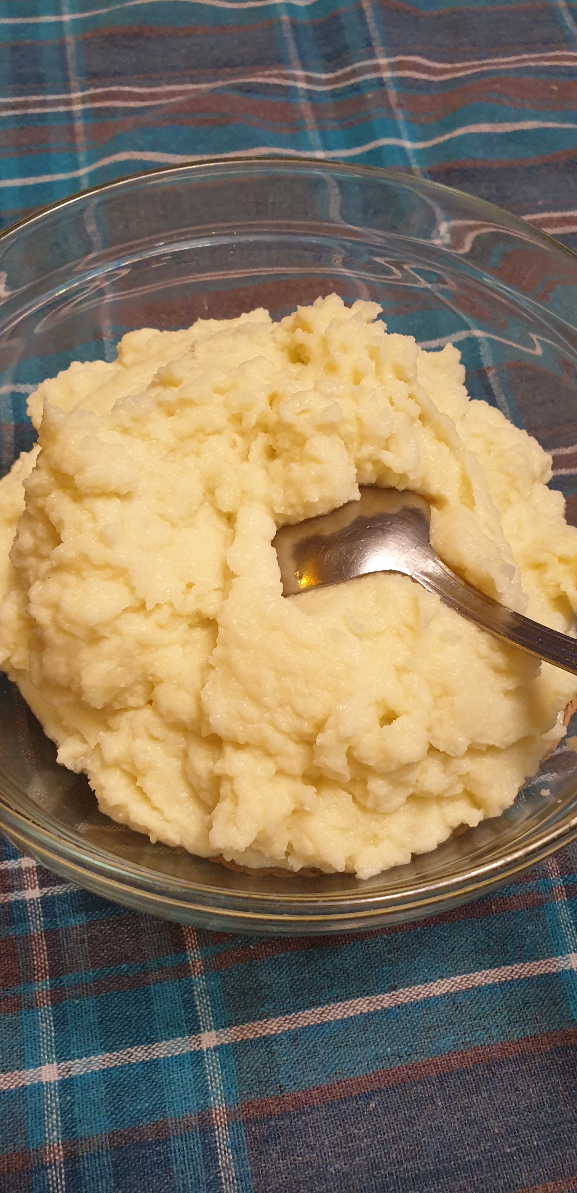 - Posa që të janë zier i kulloni dhe i qitni në mikser ku do ti bluani sa janë ende të nxehta. Ia shtoni puterin/gjalpin dhe i bluani deri sa të bluhen mirë. Nxehtësia e shkrinë puterin/gjalpin prandaj nuk keni nevojë ta shkrini përpara
