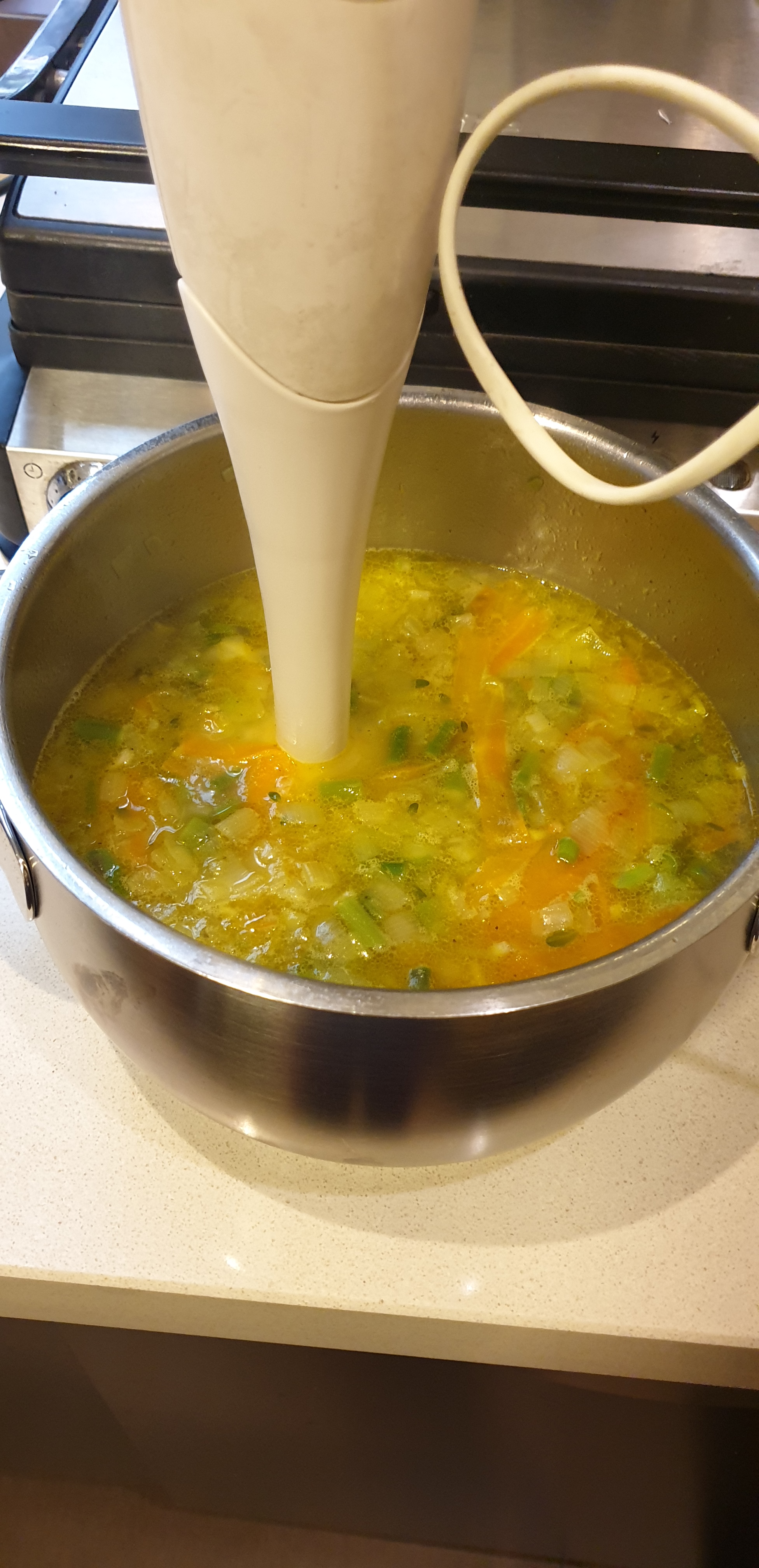 - Ia shtoni katrorin e supës. E vloni ujin dhe ia shtoni supës