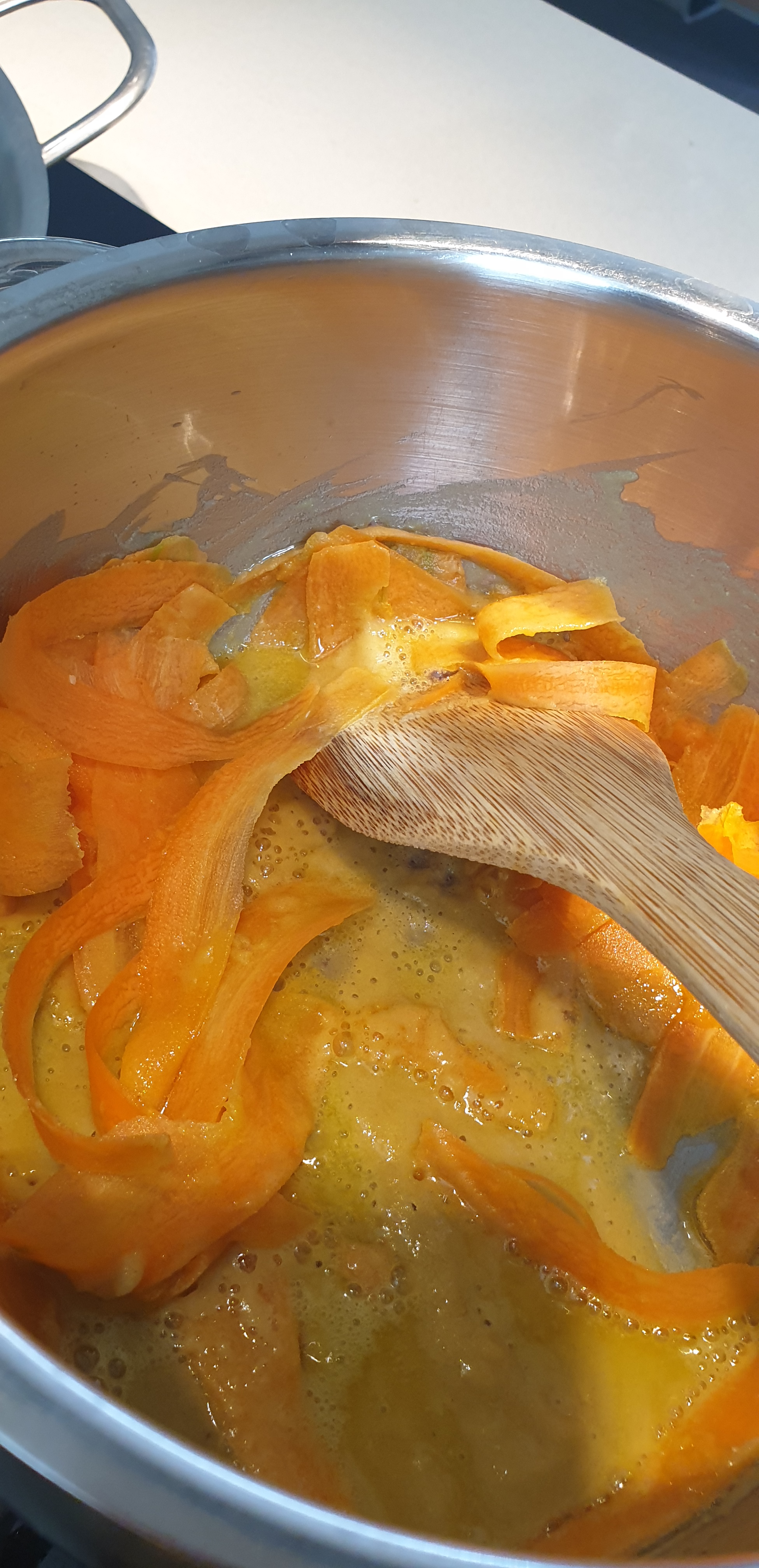 - E pastroni dhe preni karrotën në petëza të holla, me thikë mandolinë, që të zihet më shpejtë