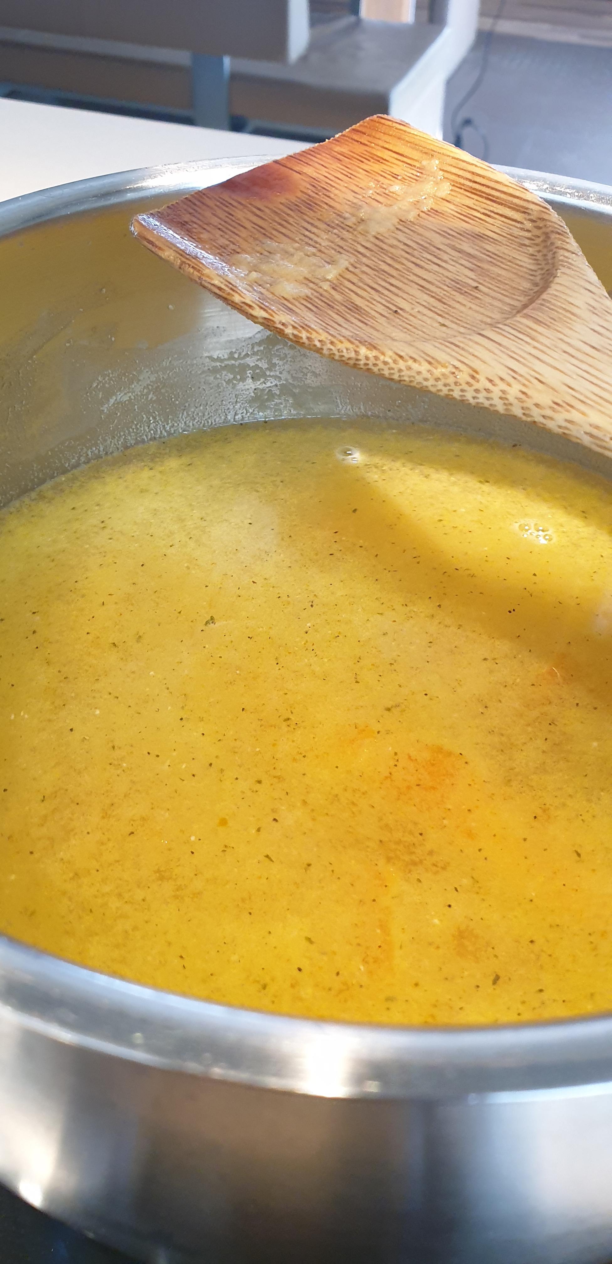 - Ia shtoni tamlin/qumështin dhe e leni vetëm deri sa të nxehet mirë. Nuk ka nevojë të vlojë më