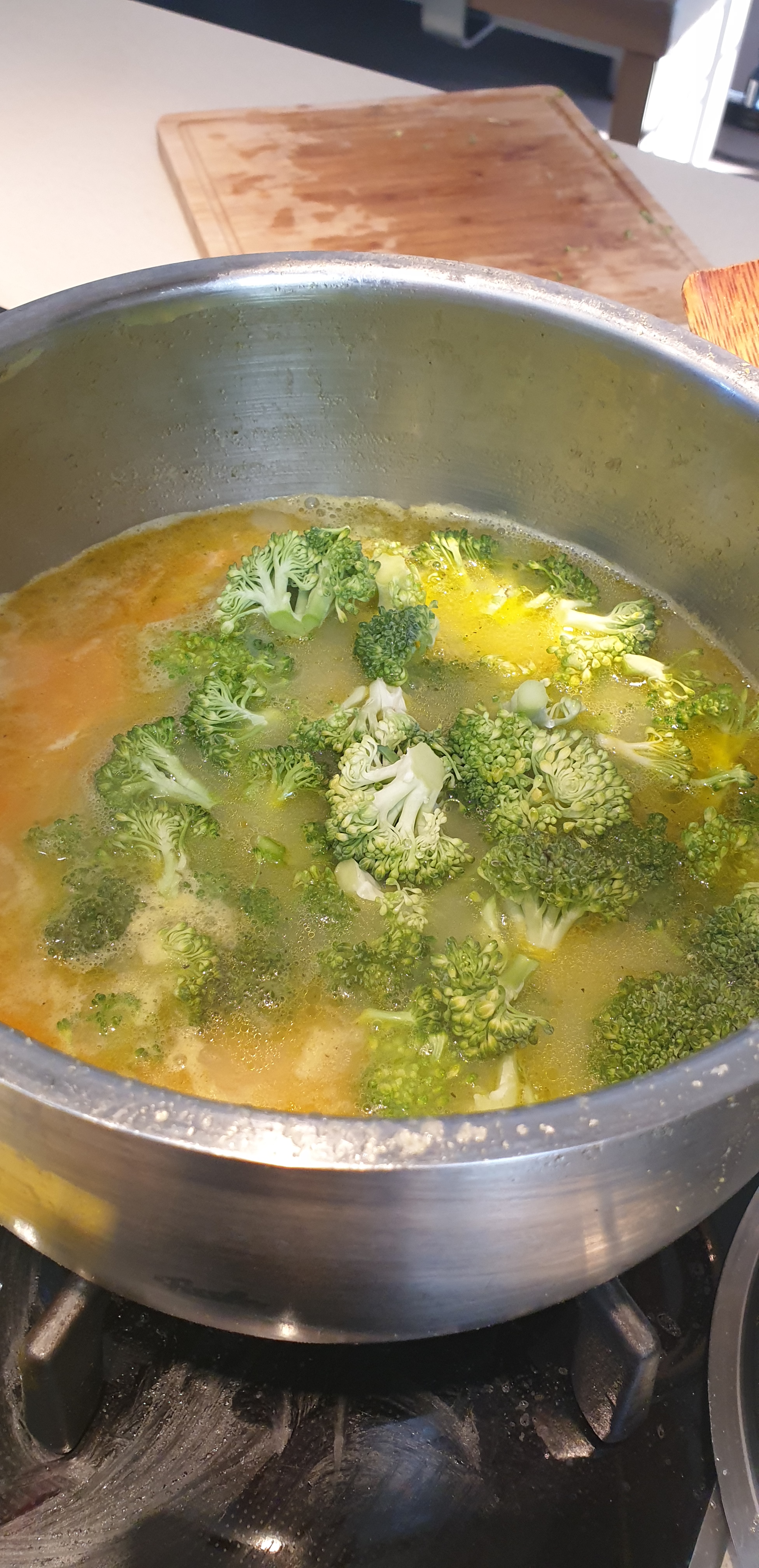 - Posa të vlojë i shtoni brokolin. E lini të ziejë 8-10 minuta. E provoni për kripë dhe i shtoni nëse ka nevojë