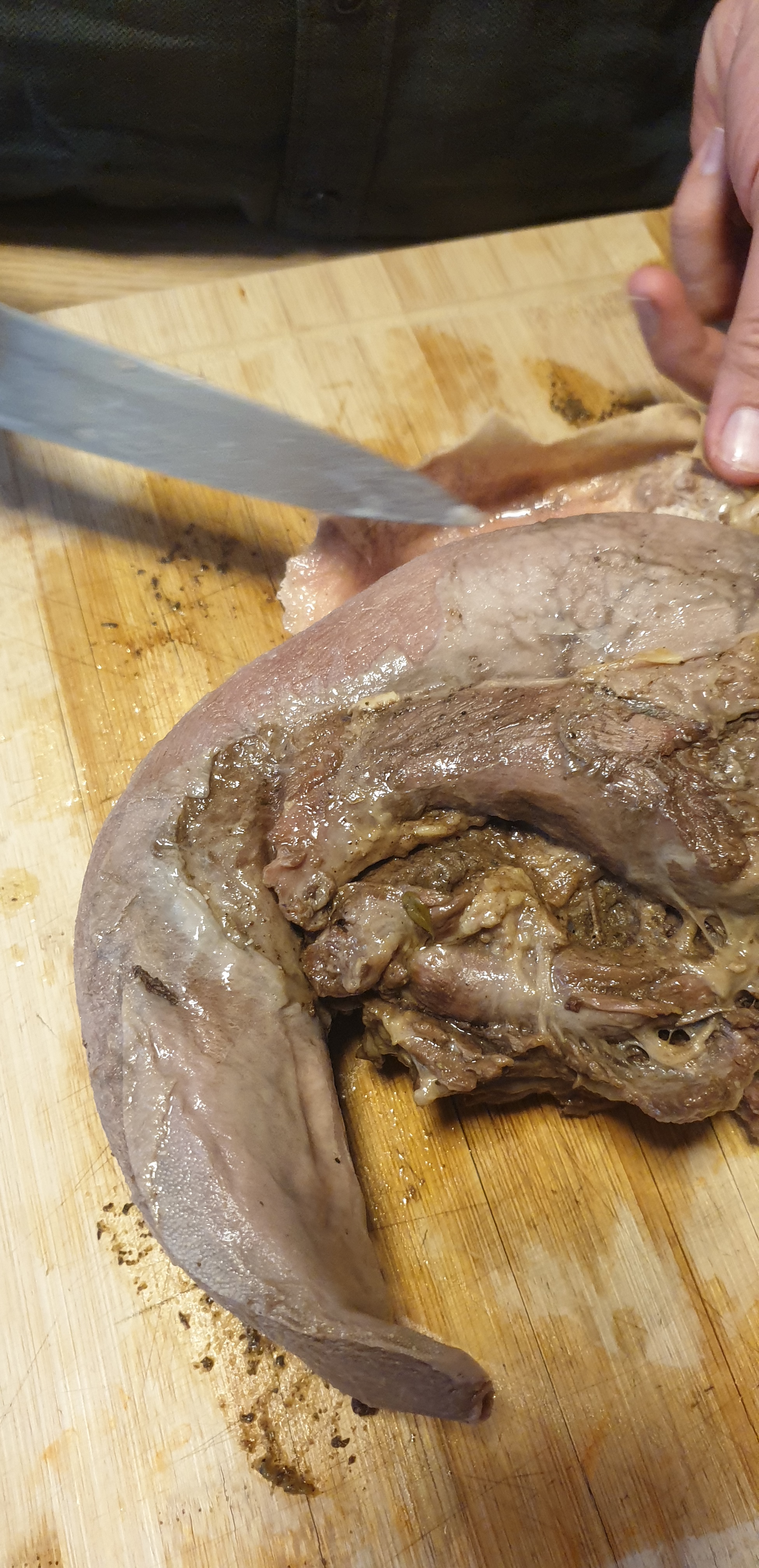 Siç kam shkruar në recetat e mëparshme, në familjen tonë nuk hudhim as një pjesë të mishit, pasi që na duket e pakuptimtë të kemi rezistencë ndaj pjesëve tjera dhe si respekt ndaj sakrificës së një shtaze, ne i përdorim të gjitha pjesët. Kjo ndodhë poashtu edhe sepse ne blejmë ekskluzivisht mish të rritur lirshëm, pa hormone dhe jo të rritura në mënyrë intensive. Prandaj, na duket që është mëkat nëse i përbuzim edhe pjesët e brendshme, sidomos kur bëhen shumë të mira dhe janë delikatesë.