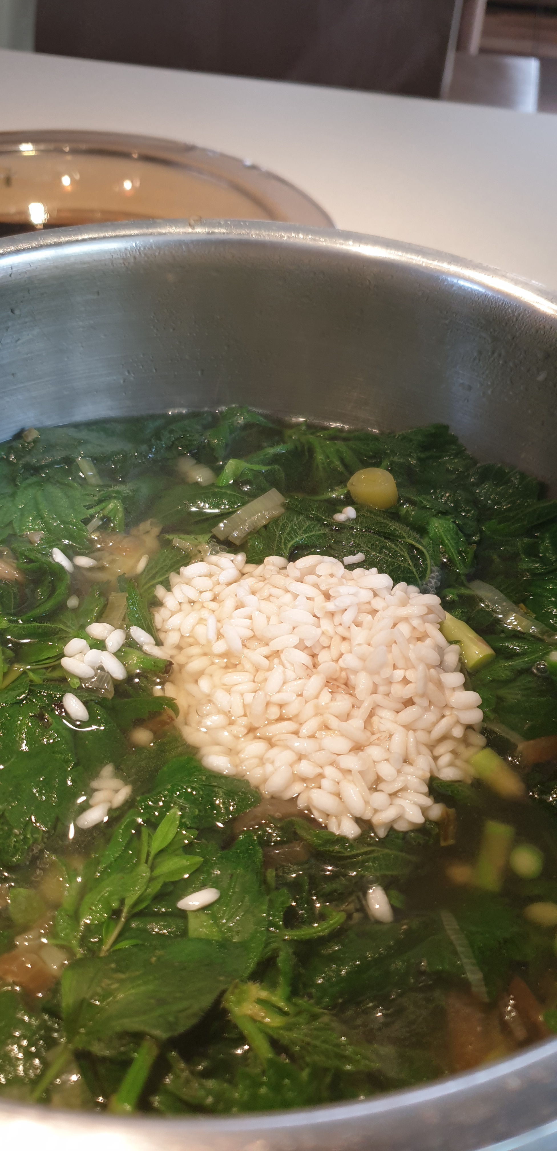 - I shtoni katrorkat e supës (nëse i përdorni) ose kripën dhe orizin